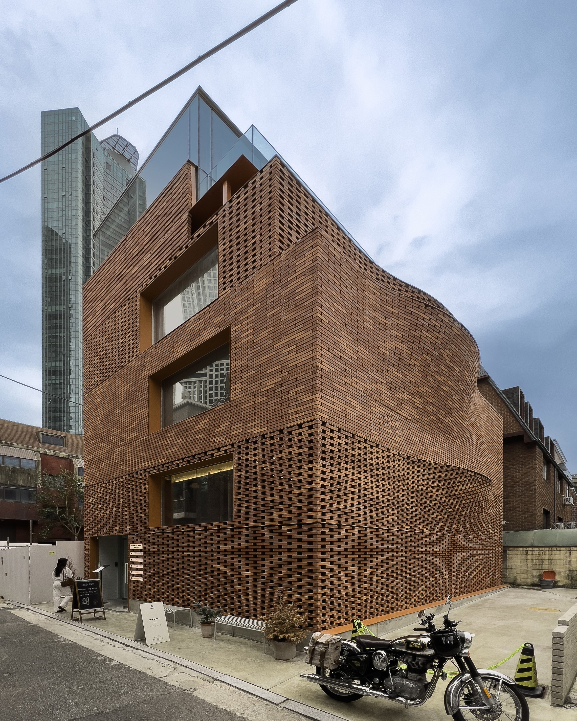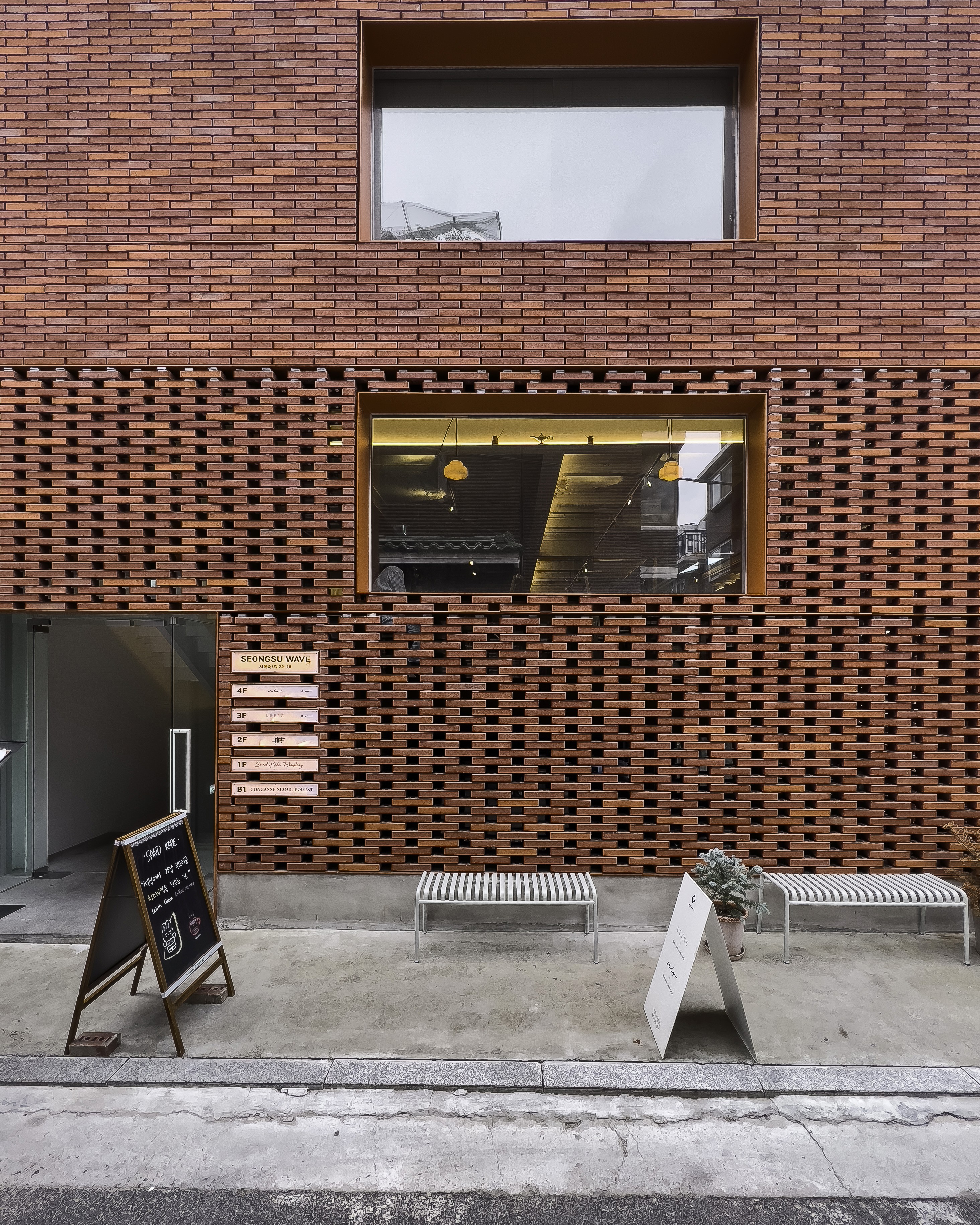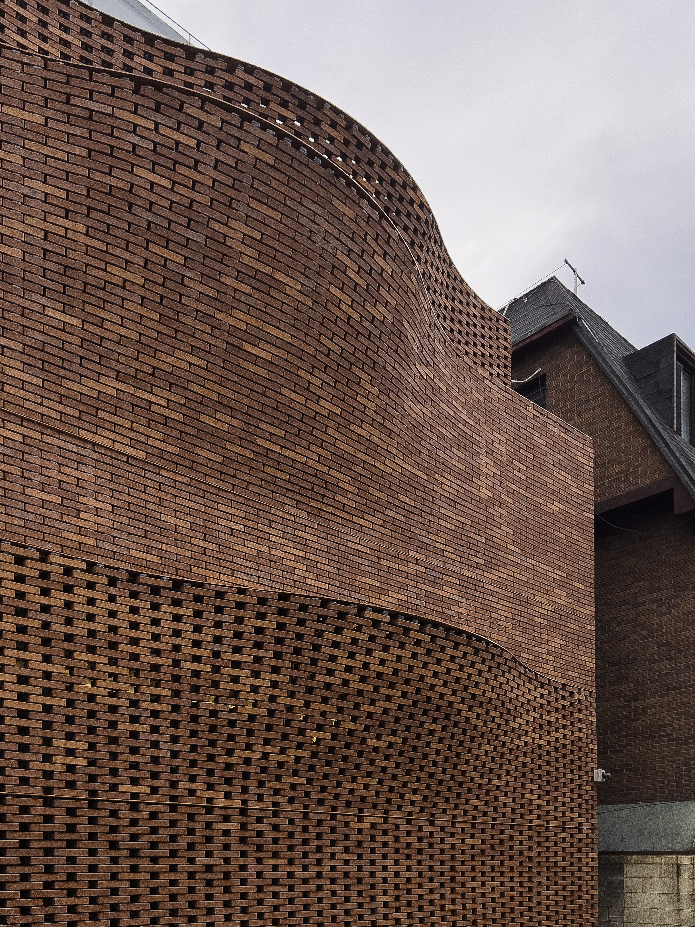 과거에는 어떤 얼굴을 하고 있었는지 생각이 안 날 정도로 아름다운 옷으로 갈아입었다. 벽돌이란 묵직하고 중후한 감상이 지배적이지만 오늘의 공간처럼 그 단단한 물성을 물결치는 파도의 형태로 구현하며, 독특하고 아름다운 자태를 뽐낸다. 벽돌은 쌓는 방식에 따라 그 이름이 있지만 오늘의 공간이 하고있는 벽돌 쌓기의 방식은 ‘영롱 쌓기’이다. 구멍이 뻥뻥 뚫리도록 쌓는 것이 특징이며, 이렇게 하면 내 외부의 공기를 차단할 수 없기 때문에 그 안에 유리창을 대는 것이 한국[여름 국가에서는 창 없이 뚫린 상태로 쓰기도 한다.]에서는 일반적이다.