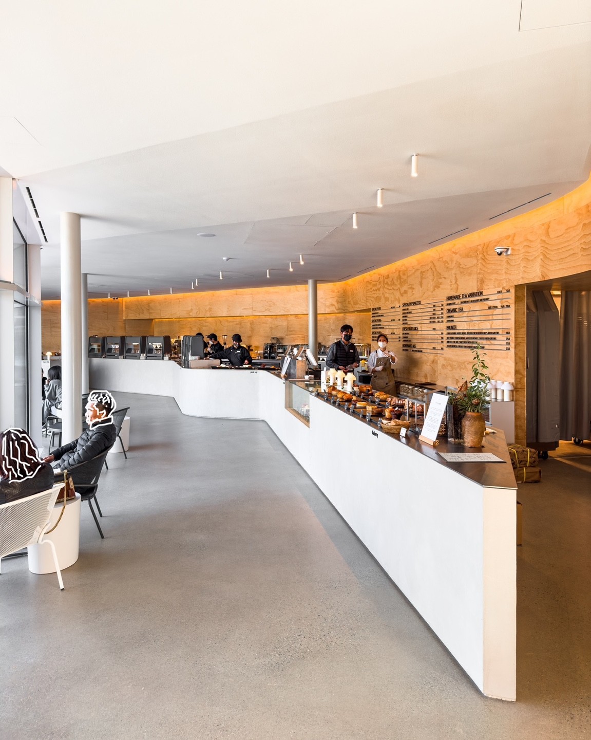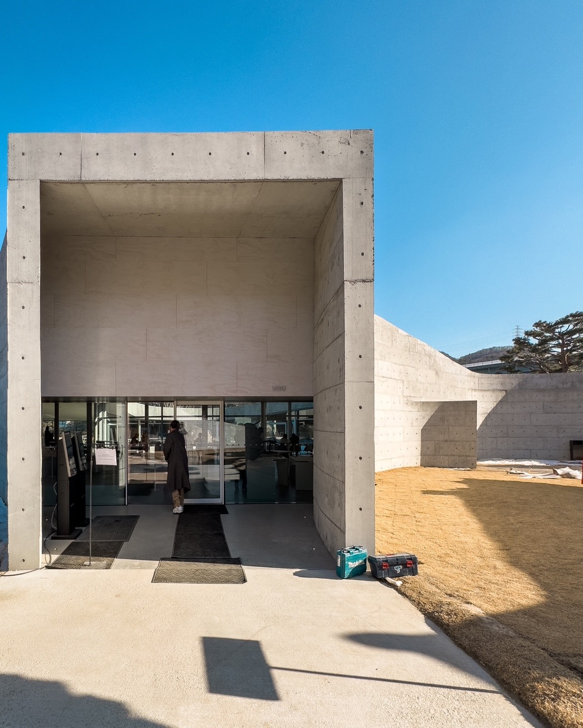 별것 아닌 것처럼 보이지만 오늘의 공간은 땅의 고저(지형의 생김새)를 그대로 이용해 바닥을 만들고 있다. 덕분에 바닥은 땅의 생김새대로 울렁이며 공간을 경험하는 이들에게 계속해서 눈높이의 고저를 달리해 독특한 역동을 만든다. 그냥 언덕이었으면 크게 느껴지지 않을 감상이 공간을 통해 극대화된다. 단지 있던 땅에 벽과 천장을 넣었을 뿐이지만 공간을 경험하는 입장에서 그 공간감은 자연을 반하던 다수의 공간과는 전혀 다른 감상을 전달한다.