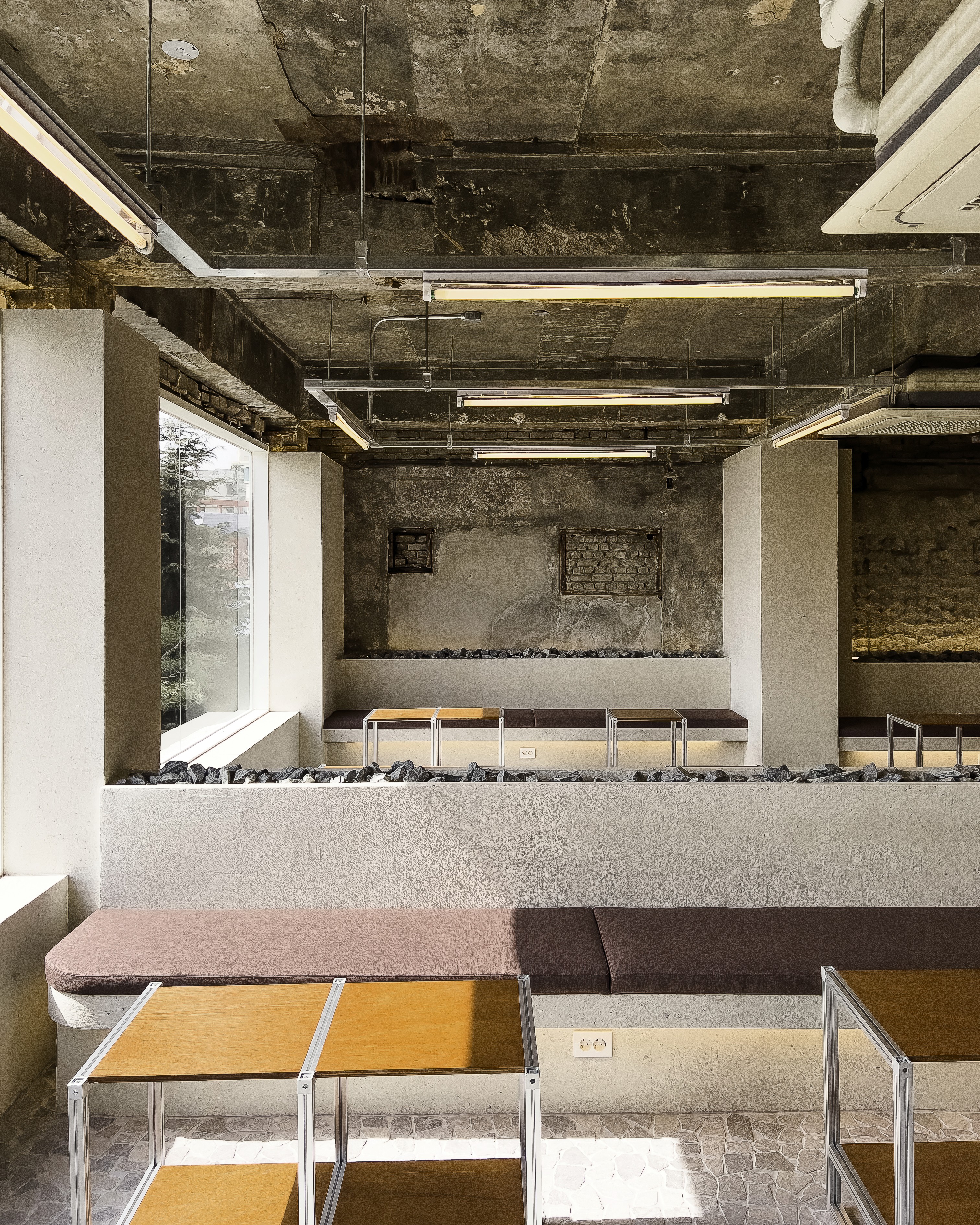 단, 공간의 본 모습을 최대한 보일 수 있도록 노력하며 말이다. 1919년에 지어진 건물이다. 103년이나 된 건물이 멀쩡할 리 없다. 그러나 과거의 흔적들을 가능한 남길 수 있도록 공간을 구성한다. 공간의 입면은 가급적 더 오래 쓸 수 있도록 그리고 본의 모습과 흡사할 수 있도록 하나의 도료로 통일시켜둔다. 쓸 수 없게 된 창은 걷어내야 했지만 그래도 기능을 떠나 쓸 수 있는 곳이면 그대로 남겨두거나 출입구로서 활용한다. 과거의 사진을 통해 확인한 이 건물의 얼굴은 대체로 남아있다. 그 시대 이곳의 공간적 양식이 남겨진 샘이다.