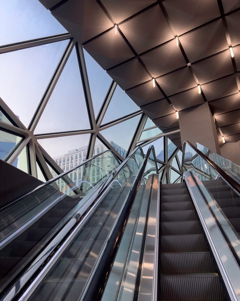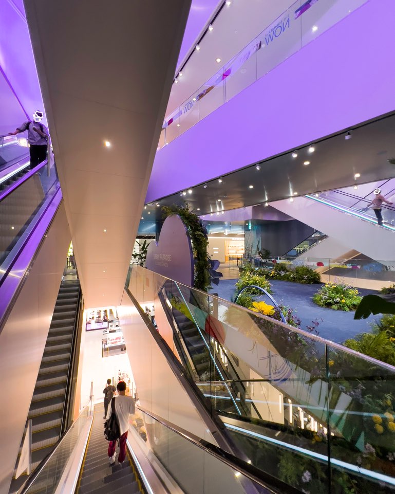 두 번째, 백화점의 메인 수직 동선 공간은 공간의 한 가운데 위치하며 지하철 2호선처럼 바로 환승해서 올라가는 구조가 아니다. 말 그대로 올라가는 방향의 에스컬레이터를 반대쪽에 두어 최소한 공간을 반 바퀴 돌게 만드는 구조이다. 오르는 곳으로 이동하는 사이 상업 공간을 도시의 공간의 길목처럼 마주하게 된다. 다양한 상업 공간이 만드는 이벤트를 즐기는 방식이다.