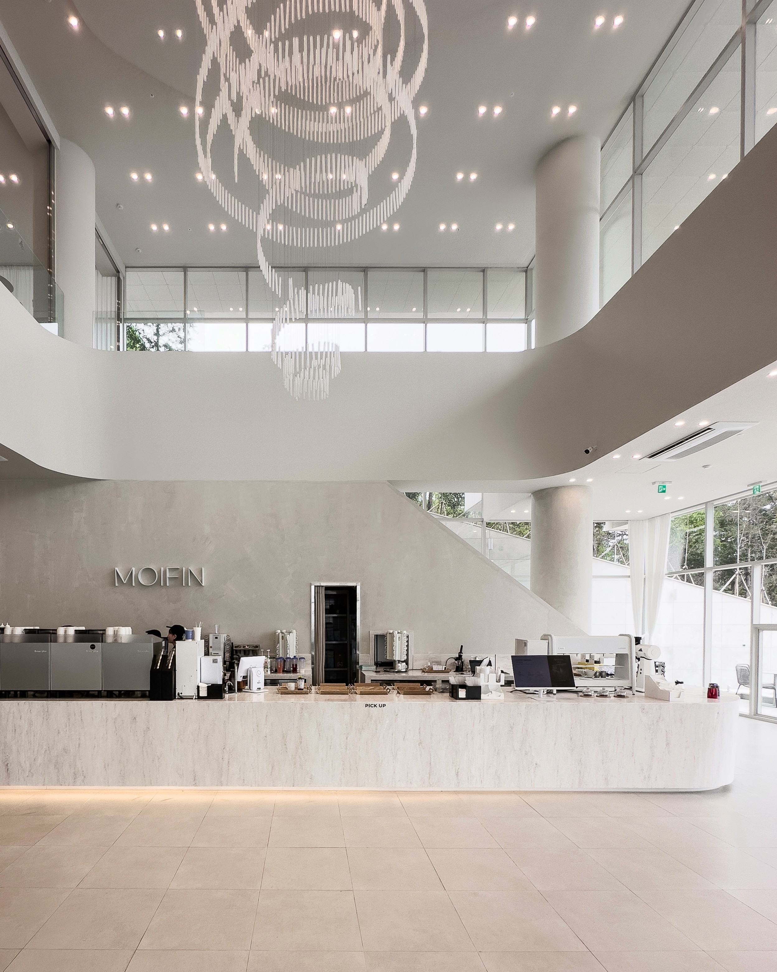 모이핀은 오션점과 바로 이곳 스카이점 2곳이 있다. 모이핀 오션과 다른 점이 있다면 이곳은 바다에 붙어있는 산자락 가운데 위치하며, 바다를 멀리서 내려다본다. 동일하게 이곳도 주변에 걸리는 경관이 없어 시원하게 바다가 보인다.
