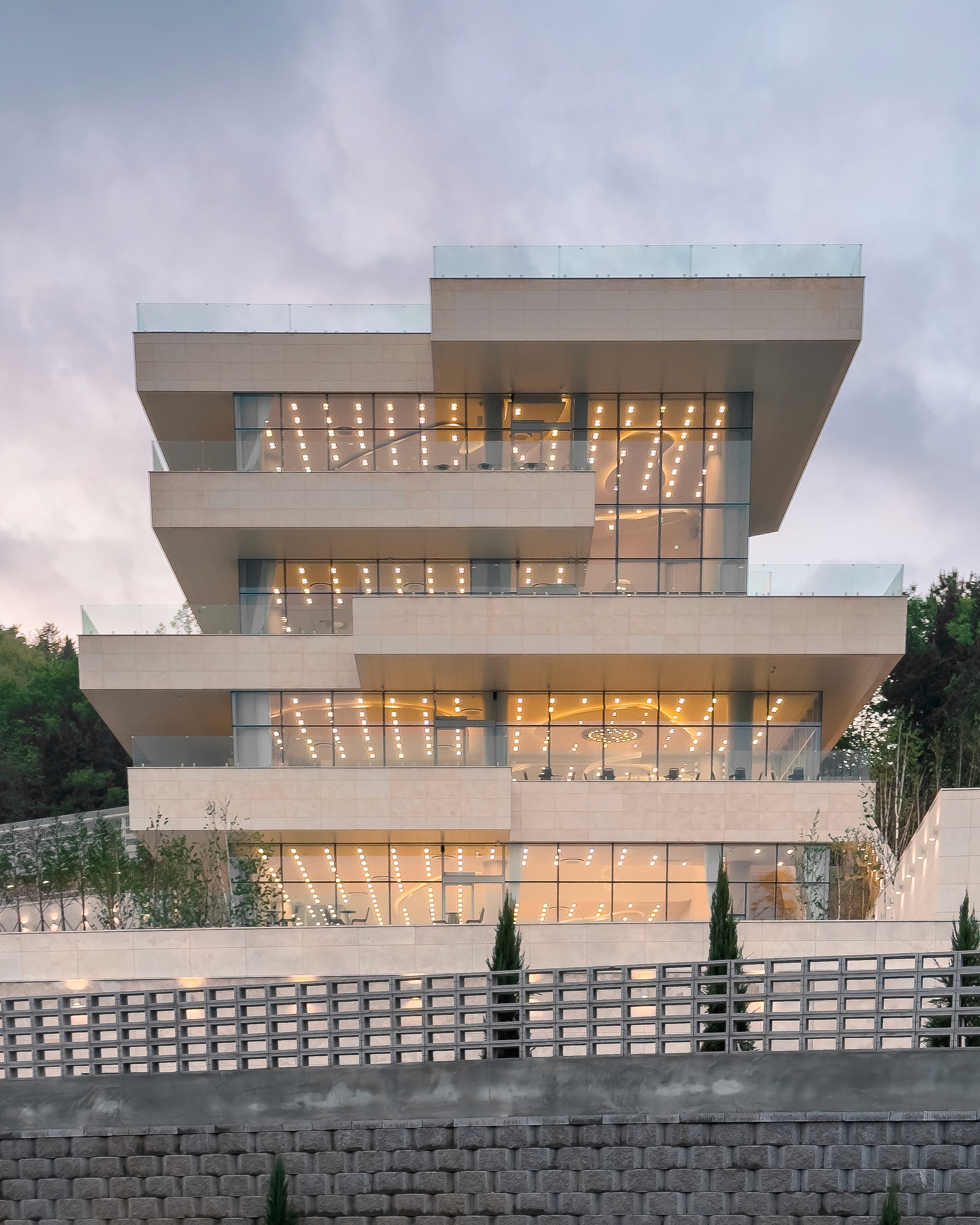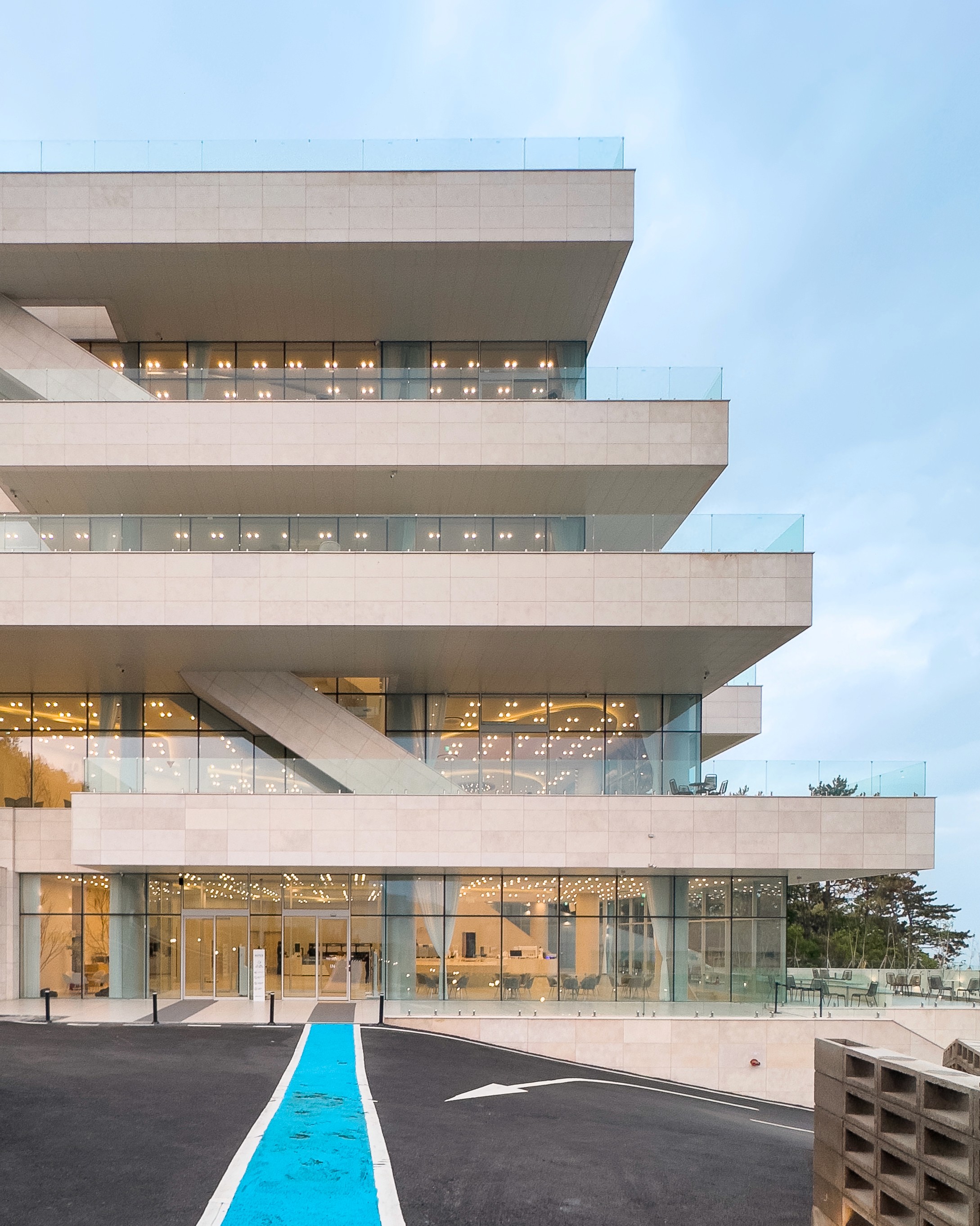 건축물을 그 경험을 전달하기 위해 오션점과는 달리, 거대한 판을 층층이 쌓아 올리는 ‘적층’의 언어를 선택했으며, 수직 이동하는 동선이 많아진 만큼 그 재미와 경험을 달리하기 위해 다양한 수직 이동 공간을 제안한다. 특히나, 고도에 따라 경험을 달리하기 위해 한 층의 층고를 어마어마하게 높게 잡아 뒀으며, 한층 한층 오를 때마다 높이가 확확 바뀌는 게 느껴진다.