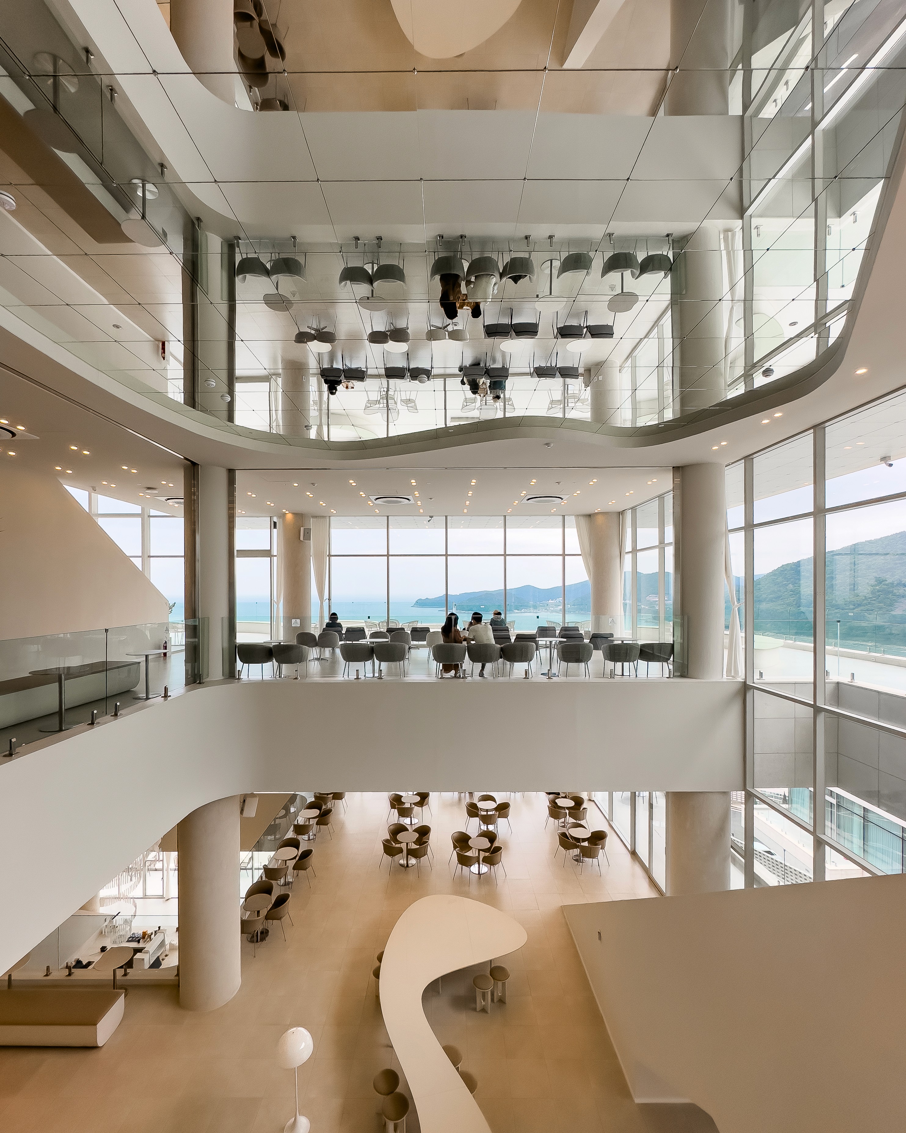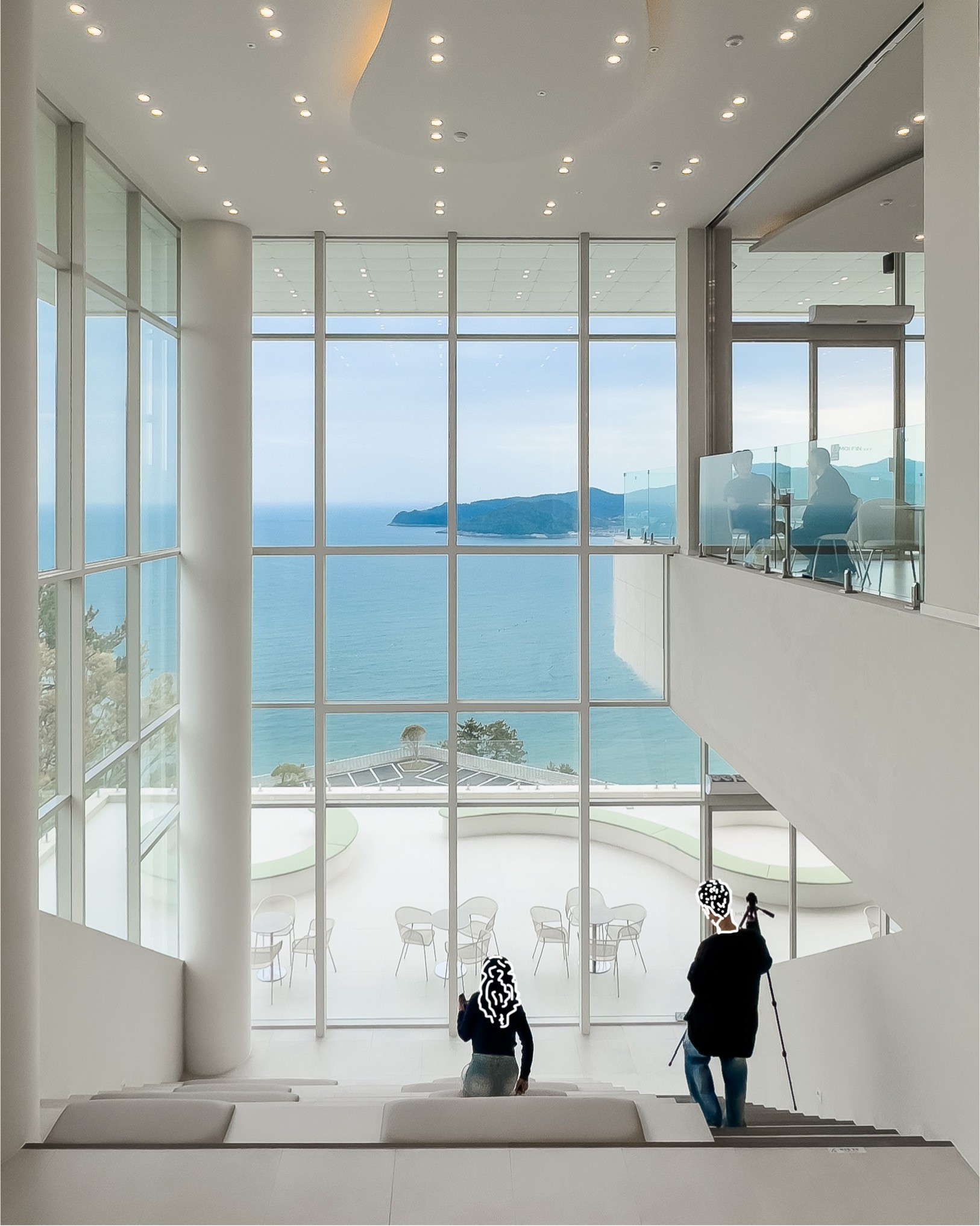 마지막으로 이런 수직적 감상이 극대화되는 것은 3번째 장에 나오는 거대한 수직 창으로 구성된 테라스형 공간이다. 수직적으로 경험하는 바다의 맥락에 맞춰 길고 높게 구성된 창에서는 그 경험이 극대화된다. 엘리베이터를 통해 올라오면 잘 느끼지 못하지만, 계단을 통해 한 층씩 정복하다 보면 이 마지막 장면이 보물을 발견한 것과 같은 감상이 강하게 드러난다.