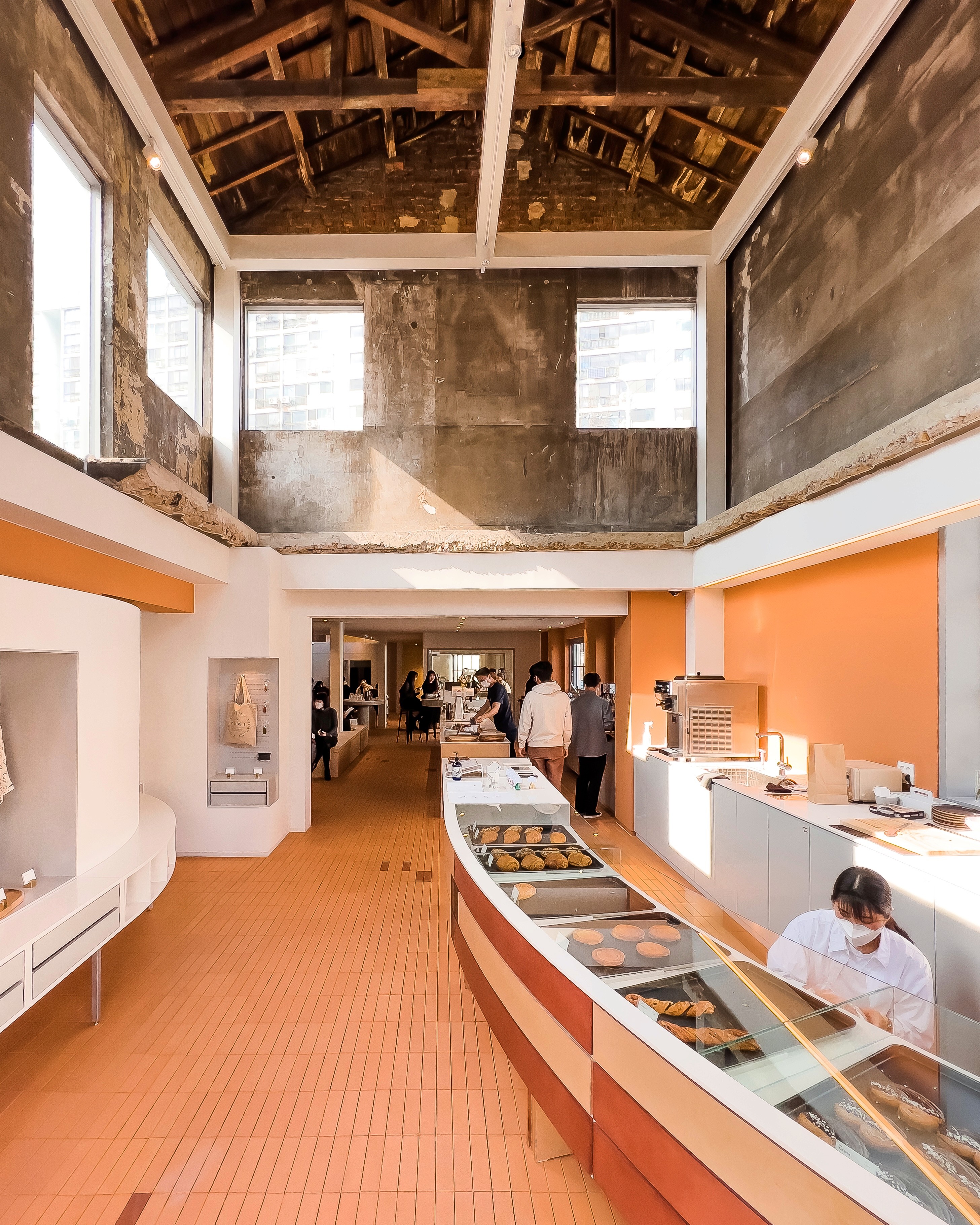 그런 도시적 맥락 속에 이 공간은 단지가 가지고 있던 진화의 방식을 받아들인다. 과거의 흔적들을 부분마다 큐브의 색 면 처럼 쪼개어 내어둔다. 입구의 천장 목구조, 외벽 면의 오래된 벽돌, 공간 내부에 군데군데 보이는 오래된 시간의 조각들이 마치 큐브처럼 박혀있다. 이것에서 오는 상상력은 완전히 새로 지어진 건물을 보는 것보다 즐겁다. ‘왜 이렇게 된 걸까?’, ‘저 벽면은 좀 더 남겨두었으면 좀 더 재밌었으려나?’라는 등 그 시간 조각들을 머릿속으로 옮겨가며 공간의 다른 모습들을 상상한다. 더군다나 새로이 만들어진 새 공간의 부분은 그 큐브처럼 특정한 패턴을 가지고 공간 곳곳에 모습을 드러낸다. 바닥의 패턴, 스테이션 옆면의 장식패턴 등이 그러하다.