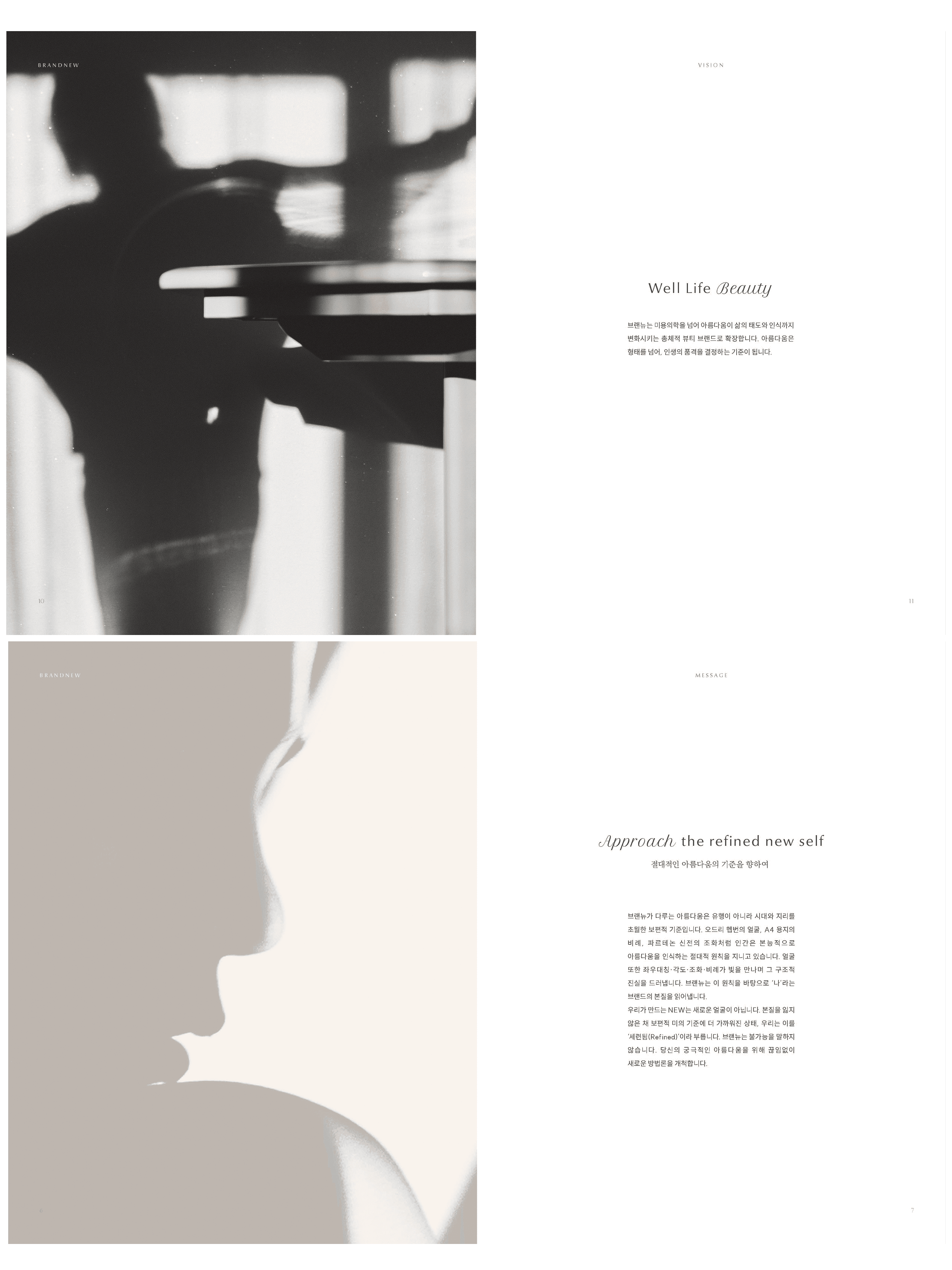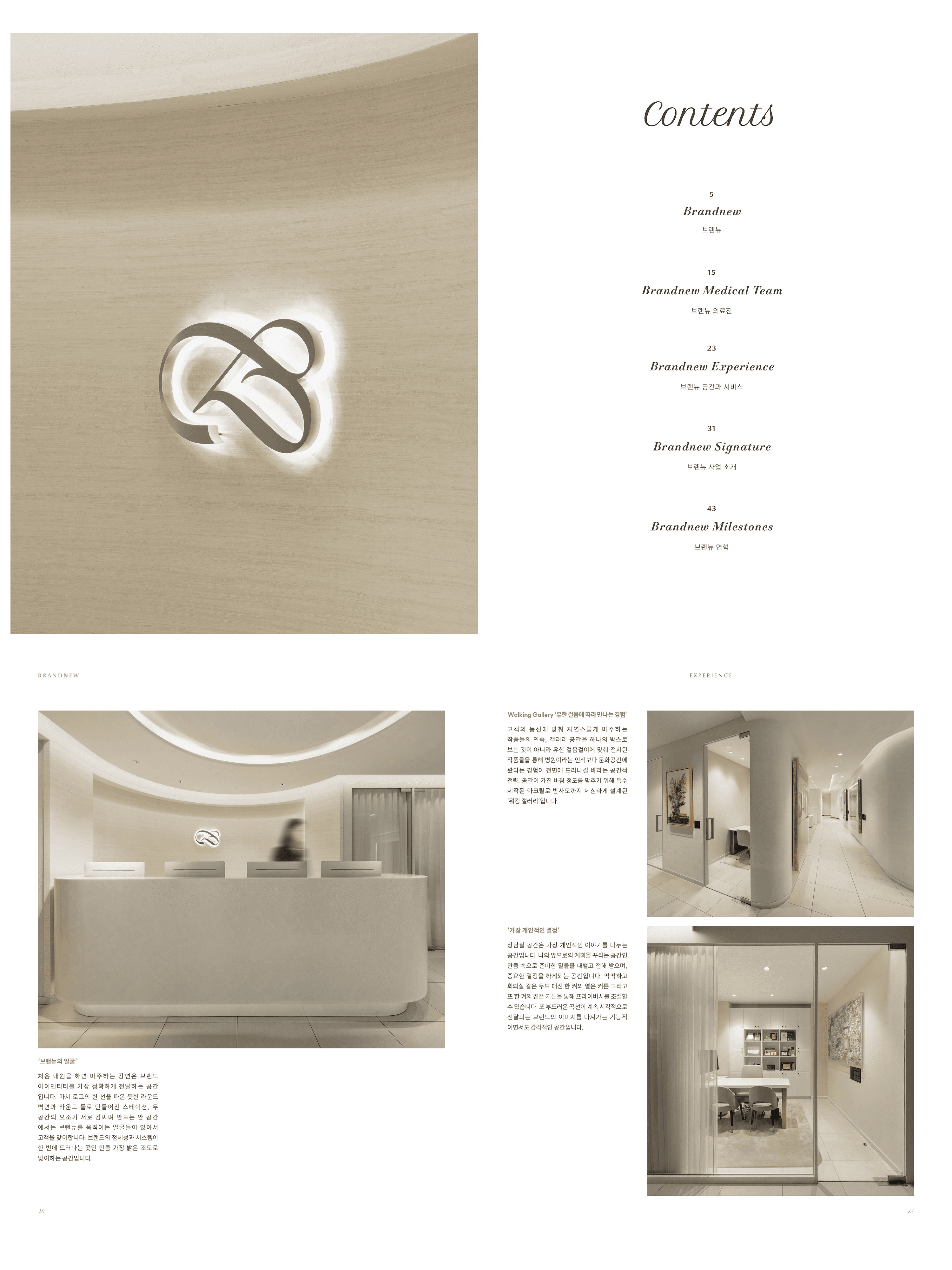 궁극적으로, 인간이 ‘아름답다’고 인식하는 미의 기준은 시대와 지리를 초월한 보편적(Universal) 가치입니다. ‘좌우대칭, 각도, 조화, 비례’ 가 완벽하게 통합될 때, 인간은 본능적으로 아름다움을 포착합니다. 인간의 얼굴 또한 예외는 아닙니다. 형태 속에 내재된 비밀스러운 조건들은 빛을 통해 조명되고, 그 기준을 향해 나아가려는 의도적인 행위야말로 우리를 가장 아름다운 상태로 수렴하게 합니다. 이것이 바로 ‘새로운 자신(Approach the refined new self)’의 출현입니다. 현 시대에서 일반인으로 규정하기에는 너무나도 탁월한 인상이라는 의미입니다. 가벼운 농담처럼 들릴지라도, 브랜뉴와 함께 진화하는 분들이 필연적으로 듣게 되는 찬사입니다. 그럼에도 불구하고, 이곳의 어느 누구도 본연의 모습을 잃지 않았습니다. 이는 타고난 상태에서 출발하여 얼굴의 조화와 균형을 미세하게 조정하며, 점진적으로 그 보편적인 이상향에 다가섰기 때문입니다. 브랜뉴는 이 아름다움의 추구를 ‘세련됨(Refined : ‘정제된’, ‘가다듬어진’ 이라는 뜻으로, 불필요한 것을 덜어내고 본질만 남긴 고급스러운 절제미를 강조)’이라 명명합니다.